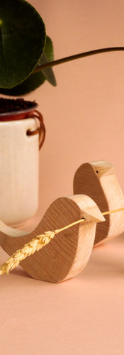 L'oiseau est en frêne français et peinte à la main. Son bec peut accueillir une fleur séchée. Ce modèle d'hirondelle est la mascotte de notre duo et fait référence à la queue d’aronde. Elle fait partie des oiseaux les plus riches en significations positives. Nos ancêtres les voyaient comme annonciatrices du printemps et porteuses de présages heureux.